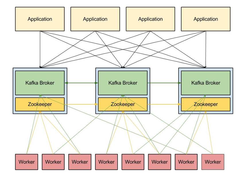 broker들이 클러스터로 구성되어 동작하도록 설계, broker가 1개라도 동작, 분산처리기