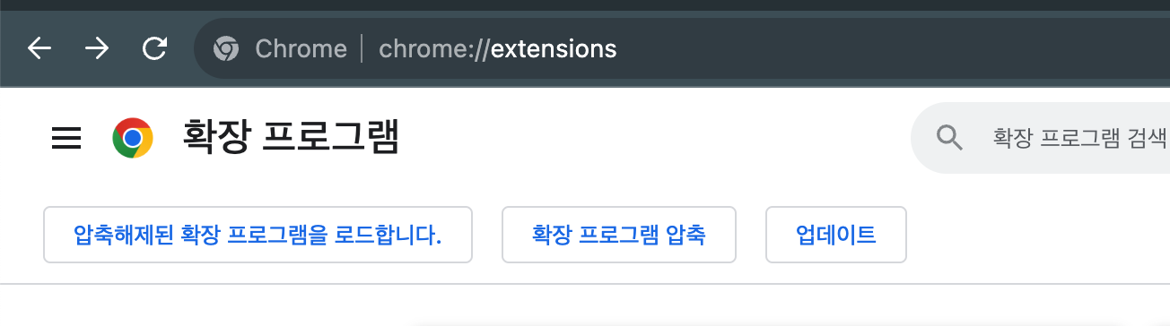 3. '압축해제된 확장 프로그램을 로드합니다' 버튼 클릭 후 해당 파일을 추가해줍니다.