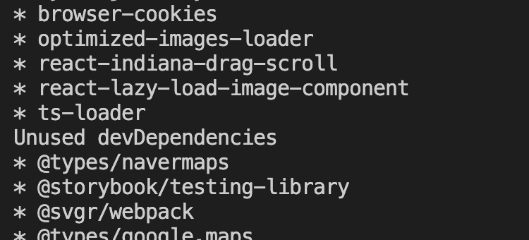 이런식으로 사용안하는 라이브러리들을 보여주고 package.json에서 제거해주시면 됩니다.